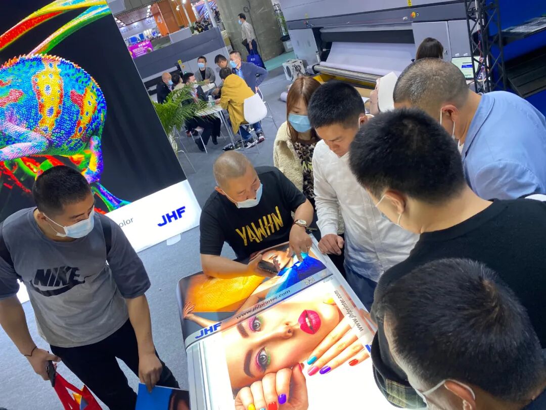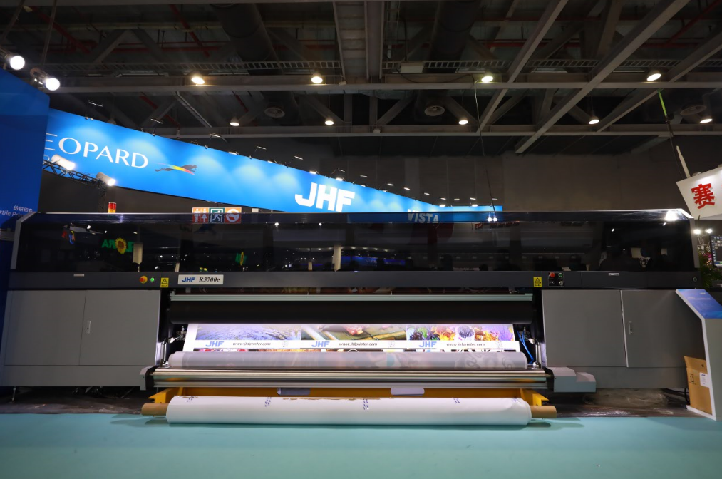 此次展出的JHF T3700宽幅直喷打印机将环保理念融入产品研发中,配备安全环保的高品质分散染料墨水,并采用更加环保的材质,让用户在实现高品质输出的同时做到绿色打印。与此同时,T3700还配有多种专业的色彩管理软件可选,具备色彩好、品质高、效率快、个性化强等优势,在广告卡布灯箱、商业广告、企业展览,展会画面呈现方面让人眼前一亮,汇聚全场焦点的同时,还具备环保易安装、耐磨易折叠等特点,成为助力行业提升品牌的最佳选择。